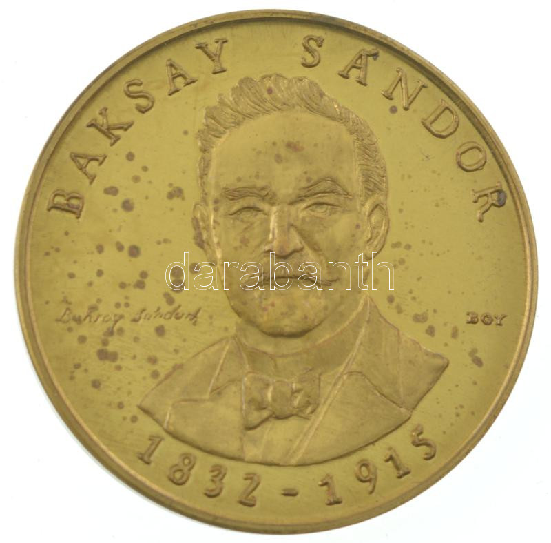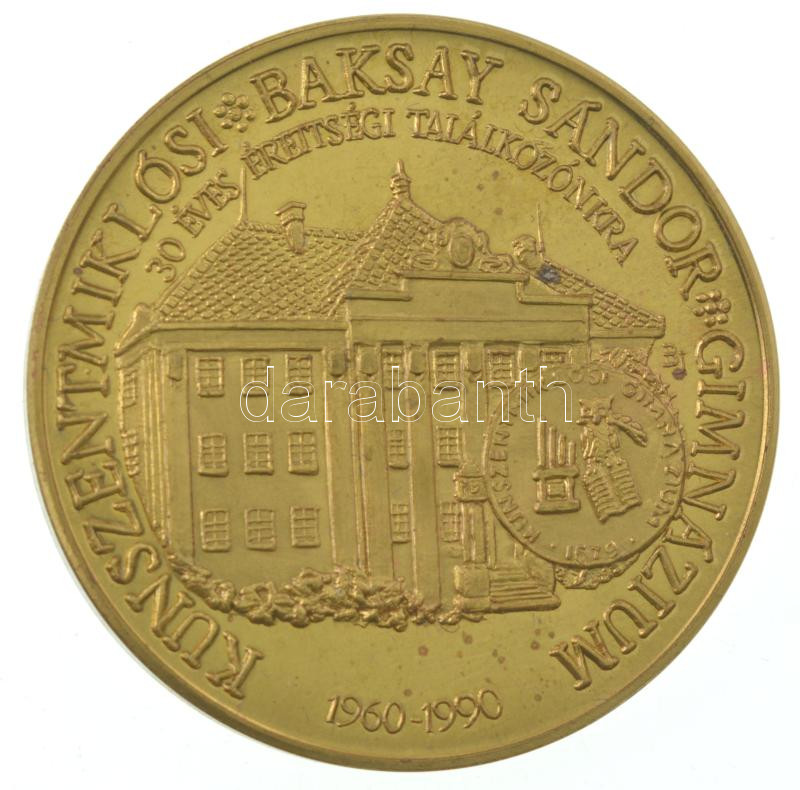Bognár György (1944-) 1989. "Baksay Sándor 1832-1915 / Kunszentmiklósi Baksay Sándor Gimnázium" kétoldalas aranyozott bronz emlékérem (42,5mm) T:AU (PP) kis patina