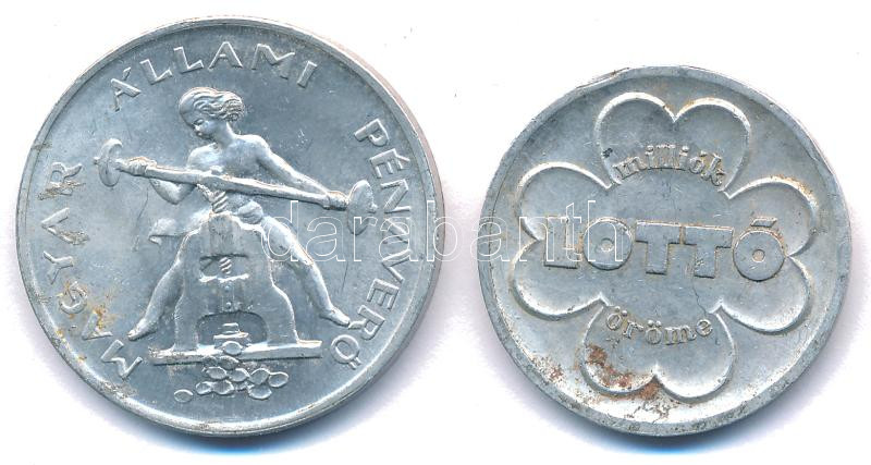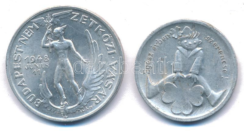 Iván István (1905-1968) 1948. június 11. "Magyar Állami Pénzverő - Budapesti Nemzetközi Vásár" Al emlékérem (32mm) + "Lottó milliók öröme / Egész évben szerencse" Al zseton (28mm) T:AU,XF