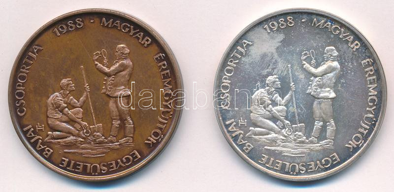 Leírás: Lapis András (1942-) 1988. "Telcs Ede / Magyar Éremgyűjtők Egyesülete Bajai Csoportja" bronz és Ag emlékérem pár (35,697g/0.835/42,5mm) T:AU, AU (PP)