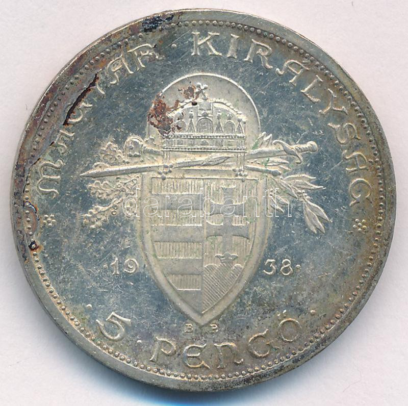 Adamo ... https://www.darabanth.com/hu/451-Gyorsarveres/451.0/Numizmatika/Magyar-es-magyar-verdejelu-fem-es-ezustpenzek~1500008/1938-5P-Ag-Szent-Istvan-TAU-XF-latvanyos-patina--Adamo-P81~II2995906
