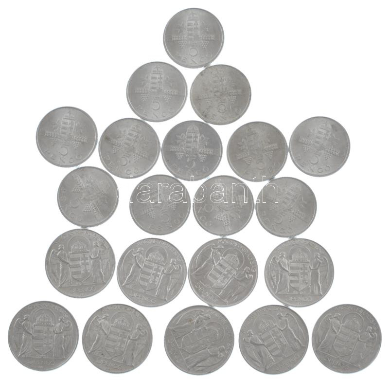1943. 5P Al "Horthy Miklós születésének 75. évfordulója" (9d... https://www.darabanth.com/hu/451-Gyorsarveres/451.0/Numizmatika/Magyar-es-magyar-verdejelu-fem-es-ezustpenzek~1500008/1943-5P-Al-Horthy-Miklos-szuletesenek-75-evforduloja-9db-plus-1945-5P-Al-Parlament-12db~II2999001