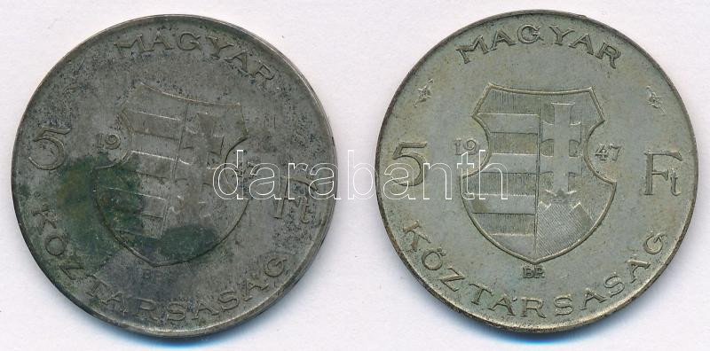 Leírás: 1947. 5Ft Ag (2x) "Kossuth" T:F patina