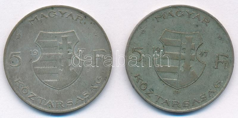 Leírás: 1947. 5Ft Ag "Kossuth" (2x) T:VF,F patina