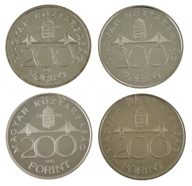 Leírás: 1992. 200Ft Ag "MNB" + 1993. 200Ft Ag "MNB" + 1994. 200Ft Ag "Deák" + 1995. 200Ft Ag "Deák" mind kapszulában T:UNC,PP,PP,XF