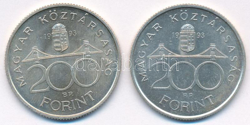 Leírás: 1993. 200Ft Ag "MNB" (2x) T:AU,XF