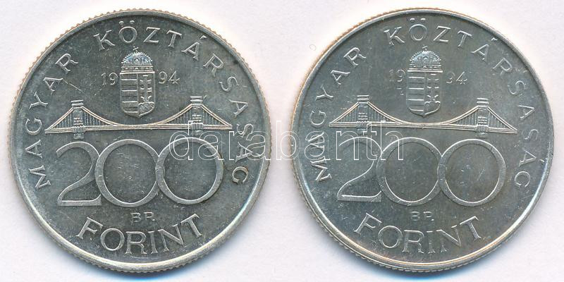 Leírás: 1994. 200Ft Ag "Deák" (2x) T:AU,XF