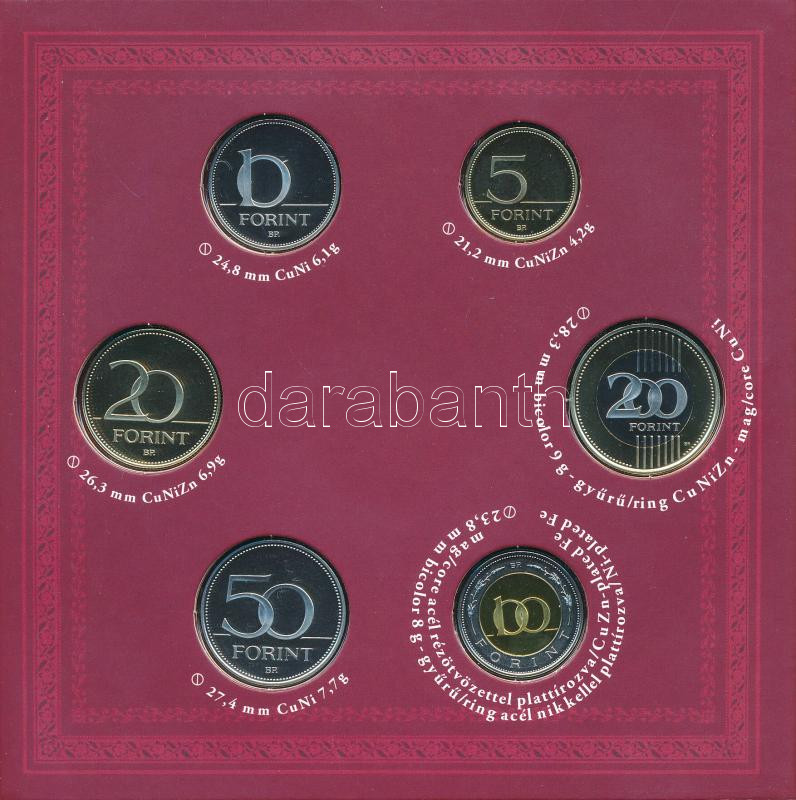 Leírás: 2018. 5Ft-200Ft (6xklf) forgalmi sor papír dísztokban "Aranyforint V." T:PP Adamo FO52.4