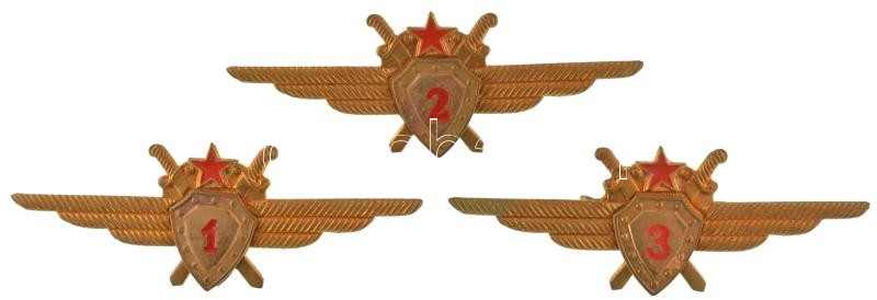 ~1958-1968. "Magyar Néphadsereg I., II. és III. osztályú repülőgépvezető" (3xklf) részben műgyantás, csavarosan rögzített fém kitüntető jelvények (23x66mm) T:AU,XF