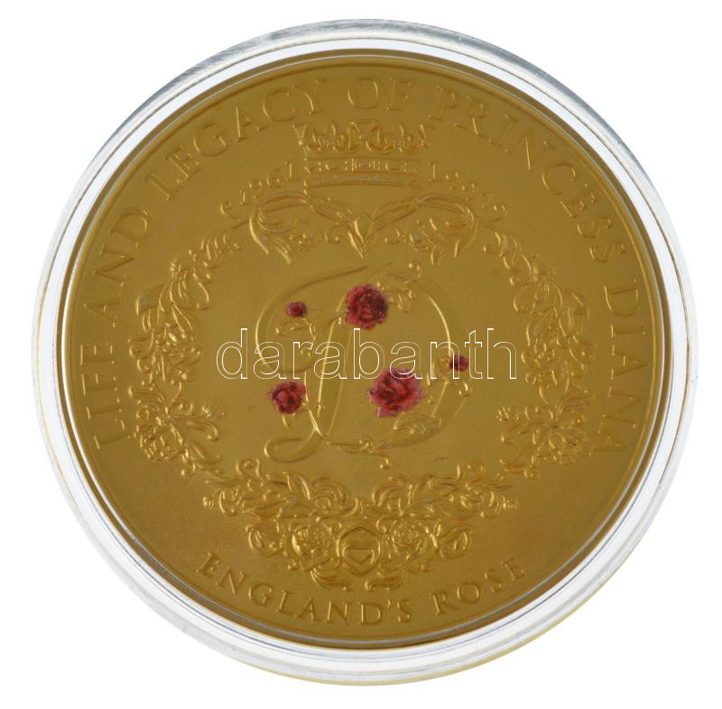 Great Britain ND "Life and legacy of Princess Diana - England's Rose / I don't go by the Rulebook, I lead from the heart not the head" goldplated Cu commemorative medallion with synthetic stones (40mm) C:PP