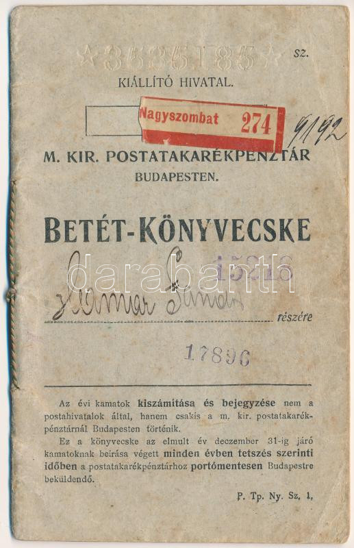 1914. "Magyar Királyi Postatakarékpénztár Budapesten" betét-... https://www.darabanth.com/hu/451-Gyorsarveres/451.0/Numizmatika/Numizmatikaval-kapcsolatos-egyeb-tetelek~1500003/1914-Magyar-Kiralyi-Postatakarekpenztar-Budapesten-betet-konyvecske-kitoltve~II2985526