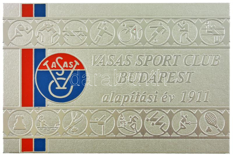 Leírás: DN "Vasas Sport Club Budapest - alapítási év 1911" egyoldalas festett Al emlékplakett (80x119mm) T:UNC
