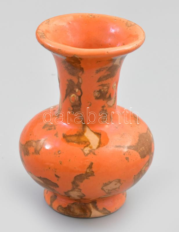 Leírás: 1952 Egri Vár Kerámia Műhely: Narancsmázas ibolyaváza. Kopással, m: 11 cm