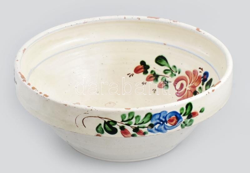 Gyöngyös, 19. sz. első fele, Formás tál, kopással, d: 31,5 cm, m: 13 c... https://www.darabanth.com/hu/451-Gyorsarveres/451.0/Porcelan-keramia-uveg/Keramiak~500005/Gyongyos-19-sz-elso-fele-Formas-tal-kopassal-d-31-5-cm-m-13-cm~II2999283