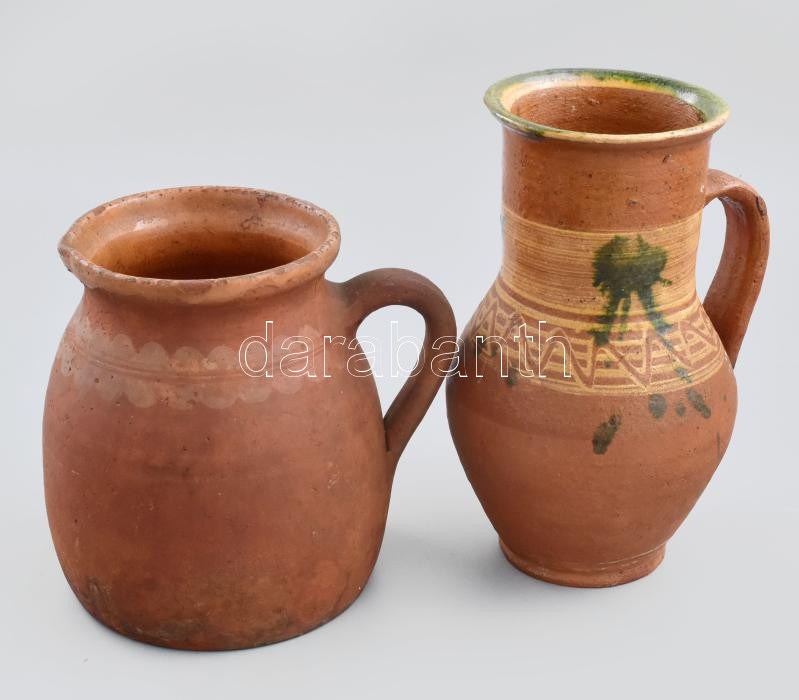 Leírás: Mezőtúr, 20. sz. eleje, szilke és lekváros köcsög, sérüléssel, m: 18-23 cm