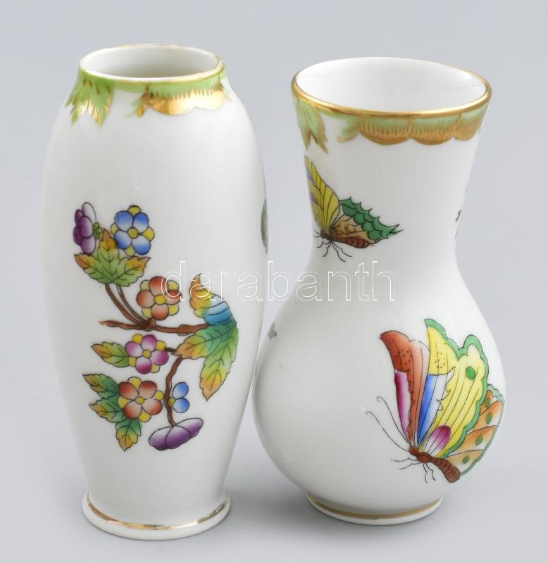 Leírás: 2 db Herendi Viktória mintás váza. Kézzel festett, jelzett, minimális kopással 9 cm