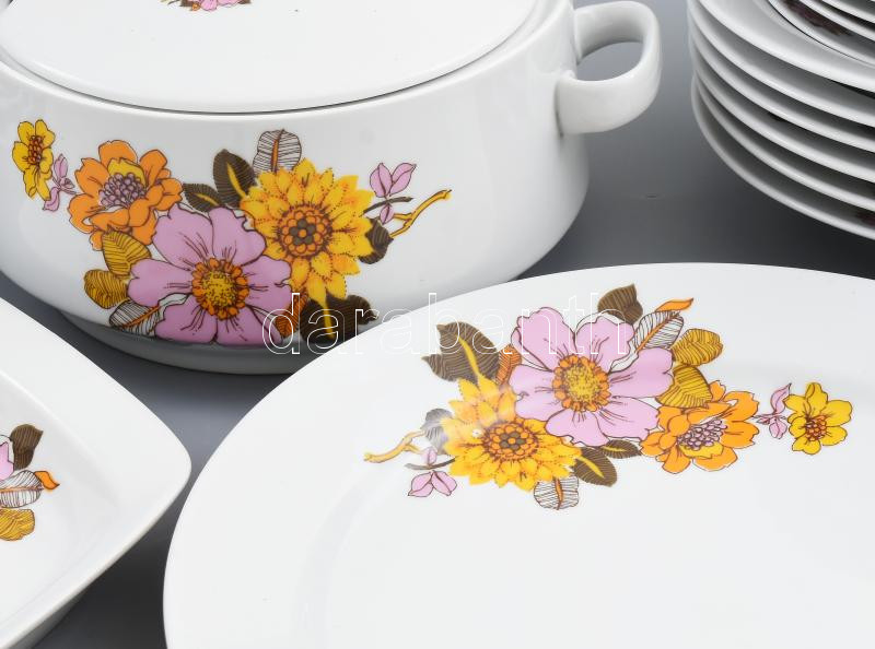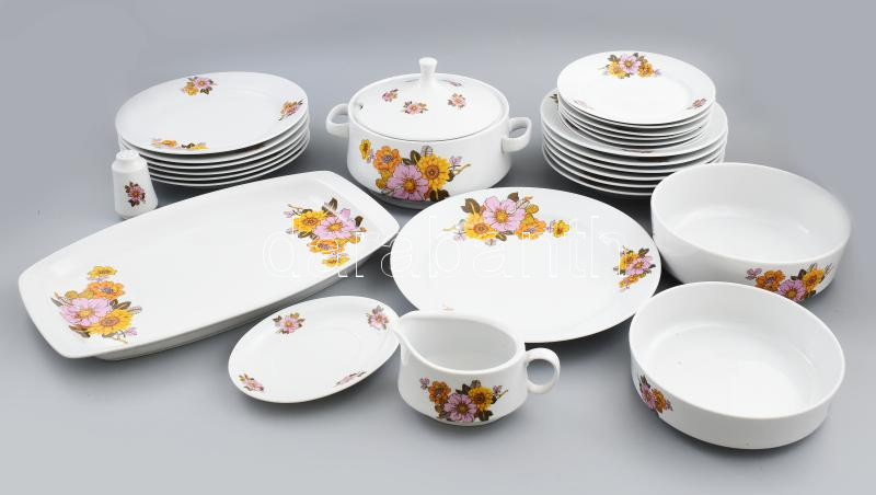 Leírás: Alföldi 26 darabos virágmintás étkészlet, kis kopással, jelzéssel