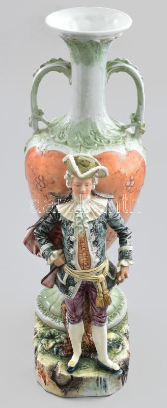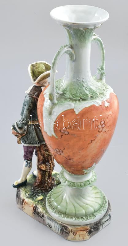 Leírás: Azonosítatlan tornyos jelzéssel: Díszváza, figurális ábrázolással Fajansz, jelzett, formaszámos. 42 cm
