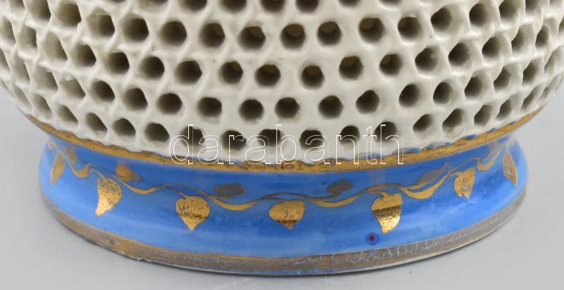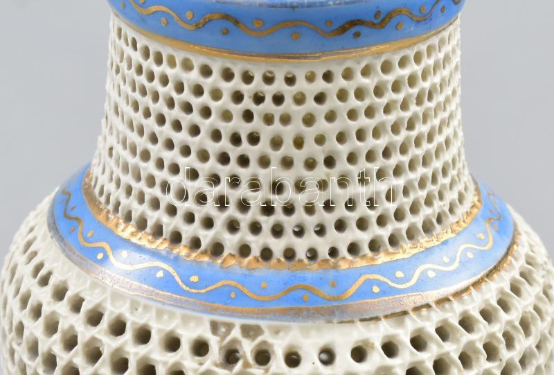 Fischer Emil áttört testű kisváza, 1900 körül, jelzéssel, formaszámmal, minimális kopottsággal, m: 13,5 cm