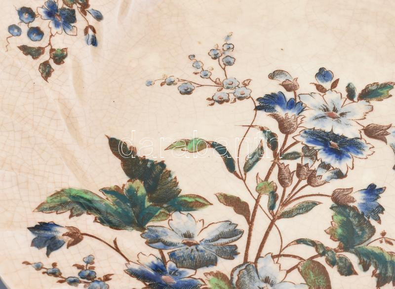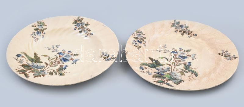 Leírás: Fischer Ignác fajansz lapos és mély tányér . Össz 2 db. Máz alatti festés jelzett, kisebb sérülésekkel d 25,5 cm