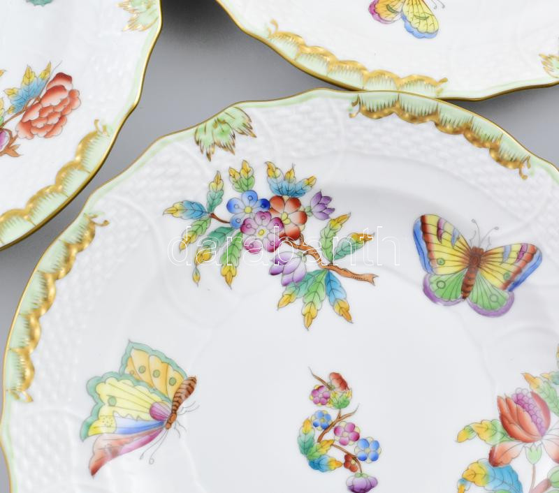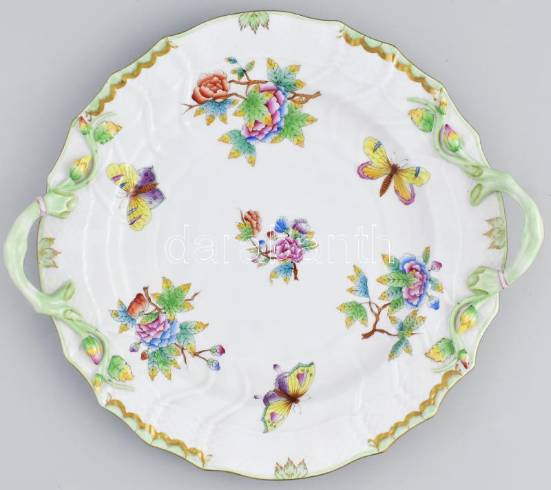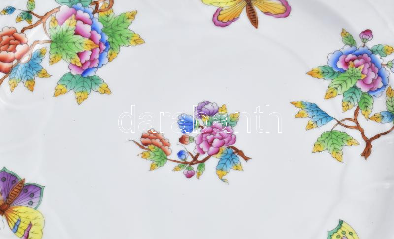 Leírás: Herendi Viktória mintás süteményes készlet, kézzel festett, jelzett, egyik tálon kopásnyommal, d: 19 cm, 30 cm