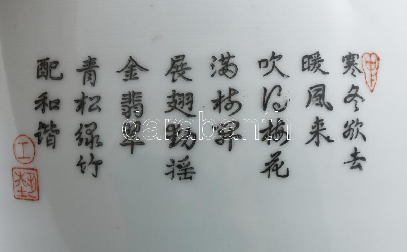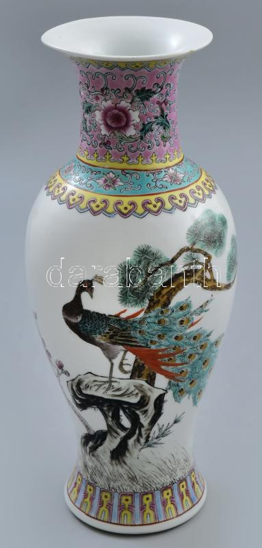 Leírás: Kínai páva mintás váza, jelzéssel, hibátlan, m: 31 cm