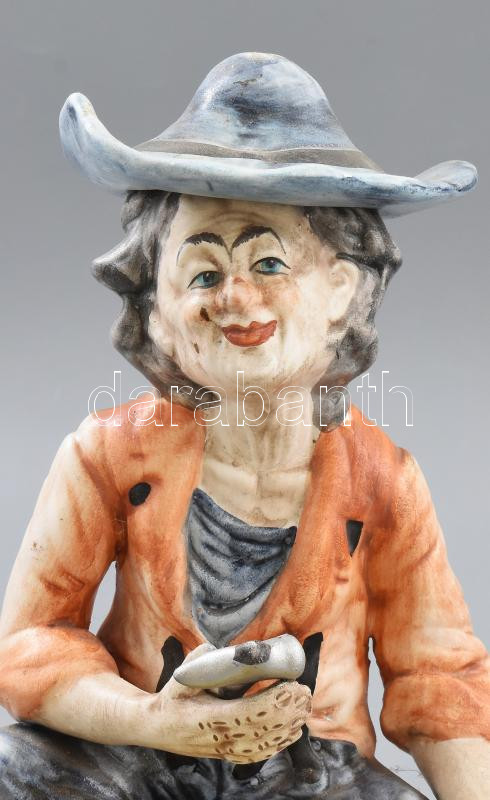 Leírás: Olasz kézzel festett cipész figura, festett biszkvit porcelán, jelzéssel, minimális kopással, m: 28 cm