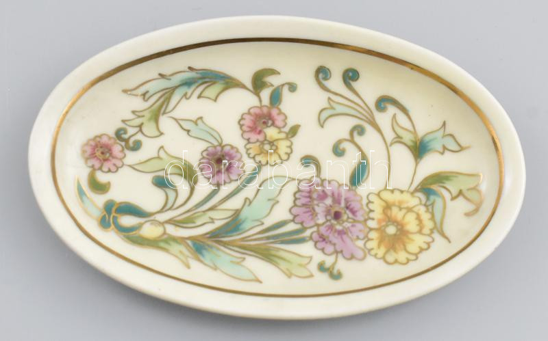 Leírás: Zsolnay Exclusiv virágmintás ékszeres tálka, kézzel festett, jelzett, 11,5x7,5 cm