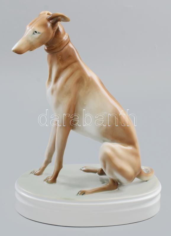 Leírás: Zsolnay agár, kézzel festett, jelzett (tervező: Markup Béla), hibátlan, m: 26 cm