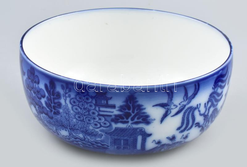Leírás: cca 1885 Royal Doulton Willow kínaizáló kínálótál, máz alatti kobalt festéssel, jelzéssel, kis kopással, d: 22 cm, m: 10 cm