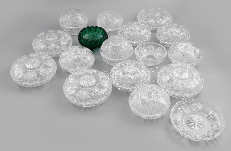 Leírás: Egy doboznyi kristály bonbonier és kínáló, zömmel jó állapotban