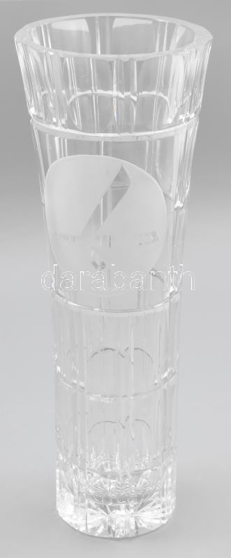 Leírás: Nagyméretű kristály váza, gravírozott (repülőgépes?) logóval, m: 37 cm