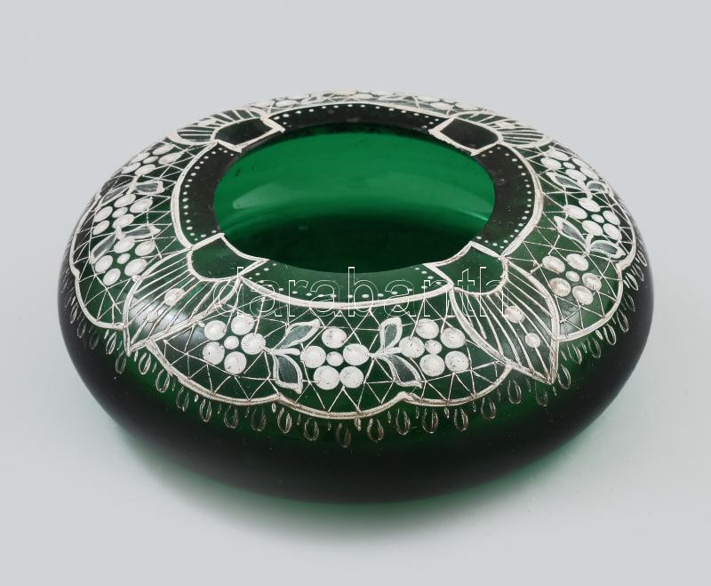 Parádi ritka zöld üveg hamuzó, zománcfestett mintával, pattogzással, d... https://www.darabanth.com/hu/451-Gyorsarveres/451.0/Porcelan-keramia-uveg/Uvegtargyak~500008/Paradi-ritka-zold-uveg-hamuzo-zomancfestett-mintaval-pattogzassal-d-13-cm~II3002367