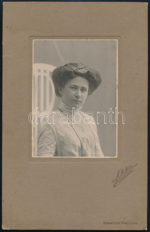 cca 1910 Debrecen, Letzter fényképész műtermében készült, jelzett vintage, keményhátú fotó, ezüst zselatinos fotópapíron, felirata szerint Rácz Erzsébet portréja, kisebb hibákkal, 28x17,8 cm