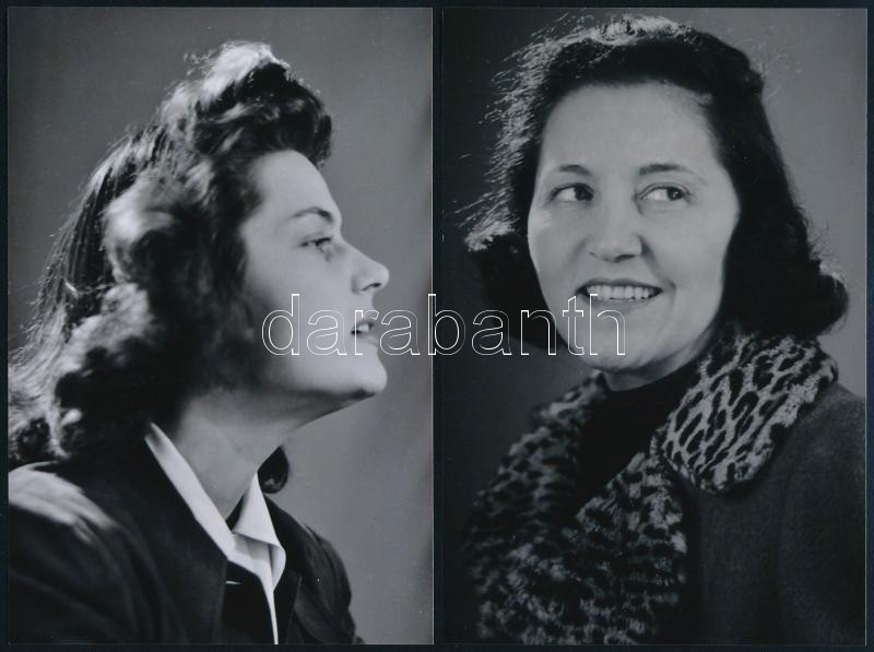 cca 1939 Karády Katalin színésznő civilben és egy hölgy ,,Karádysan" lefényképezve, dr. Csörgeő Tibor (1896-1968) budapesti fotóművész hagyatékából 2 db modern nagyítás, jelzés nélkül, 15x10 cm
