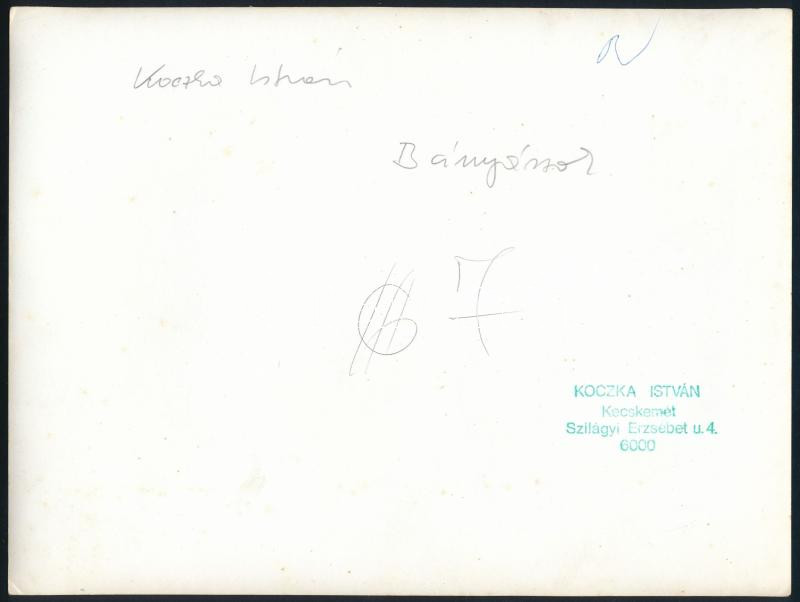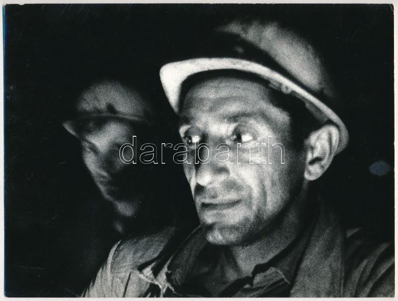 cca 1975 Koczka István kecskeméti fotóművész aláírt, pecséttel jelzett, vintage fotóművészeti alkotása (Bányászok), ezüst zselatinos fotópapíron, 18x24 cm