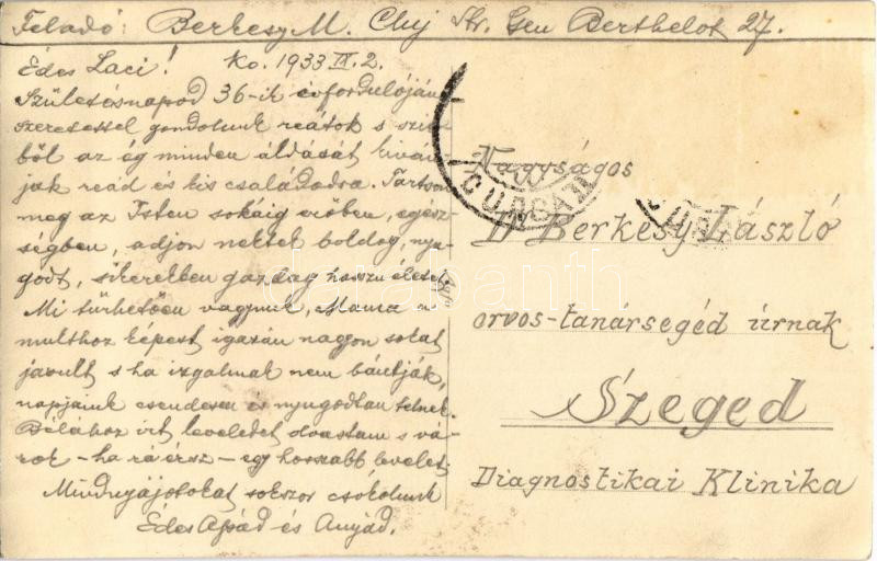 1933 Kolozsvár, Cluj; Berkesy (Berkesi) Márton nyugalmazott vasúti főfelügyelő által készített napóra a volt Waltonné féle házon / sundial made by Berkesy. photo