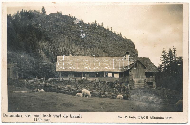 Detonáta-hegy, Detunata; Cea mai mare stanca de bazalt din Romania, 1169 mtr., Foto Bach 1929 No. 55 / Románia legnagyobb bazaltkőzete / The largest basalt rock in Romania. photo (fl)