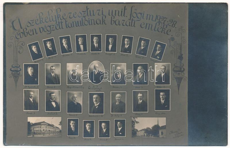 Székelykeresztúr, Kristur, Cristuru Secuiesc; Unitárius főgimnázium 1927-28. évben végzett tanulóinak baráti emlékére, tablókép. Nagy B. fényképész / school tableau. photo (fl)