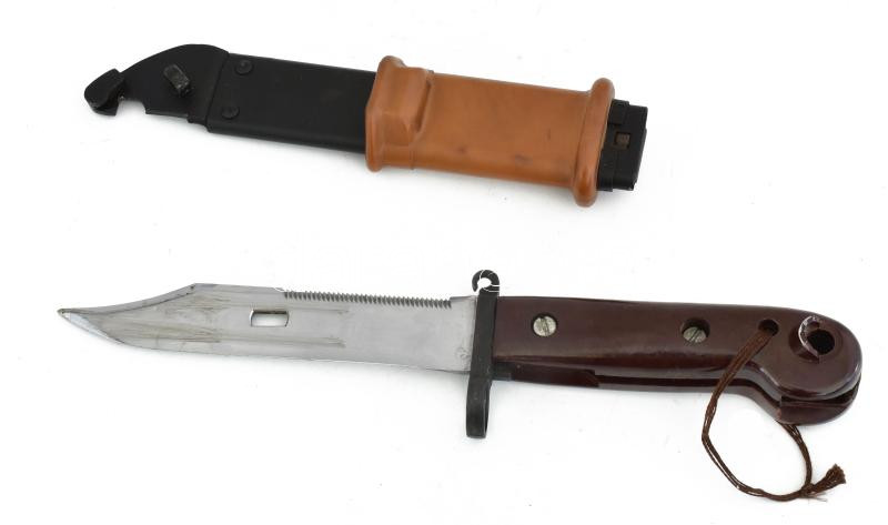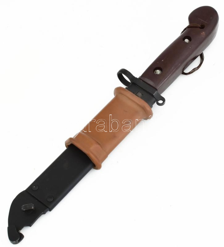 Leírás: AK-47 bajonett, jelzés nélkül, eredeti hüvellyel, h: 28 cm
