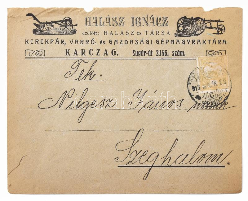 Leírás: cca 1910 Karcag Halász Ignác kerékpár, varró- és gazdasági gépgyár céges boríték