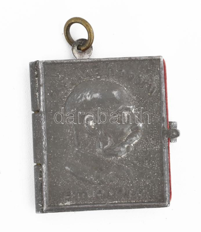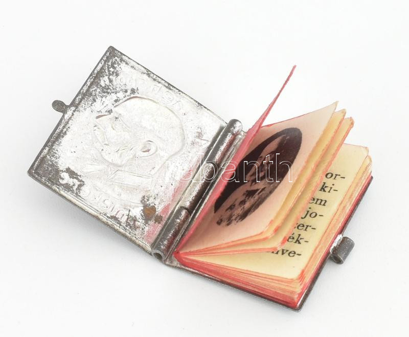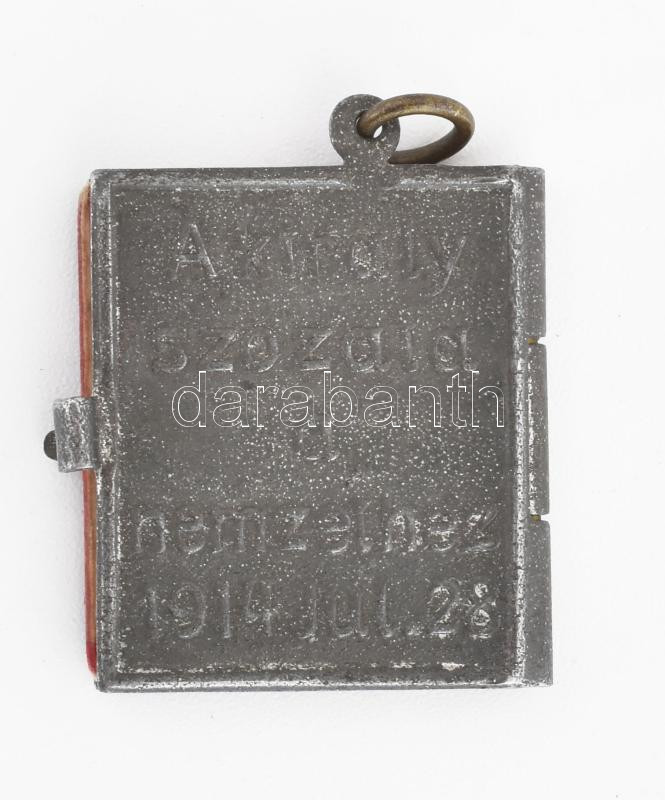 1914. Ferenc József : Népeimhez! . Minikönyv medál dombornyomott fém borítóval, "A király szózata a nemzethez 1914 július 28-án. az I. világháború kitörésekor) (24x22mm)