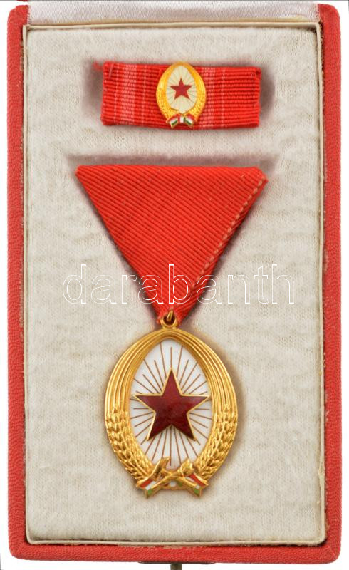 1964. "Munka Érdemrend" arany fokozata, zománcozott bronz kitüntetés mellszalagon, miniatűrrel szalagsávon, eredeti tokban, adományozói okirattal és igazolvánnyal T:UNC NMK 599.