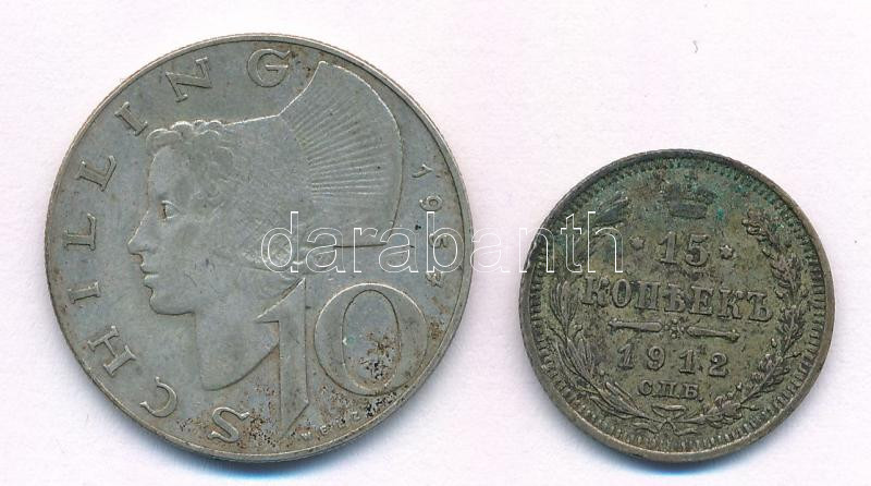 Vegyes: Ausztria 1957. 10Sch Ag + Orosz Birodalom 1912. 15k Ag T:F patina