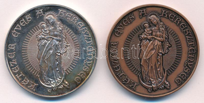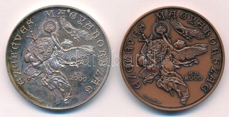 Bognár György (1944-) 2000. "Ezeréves Magyarország / Kétezer éves a kereszténység" peremen jelzett Ag és bronz emlékérem pár (33,55g/0.925/42,5mm) T:UNC,AU (ezüst eredetileg PP) patina