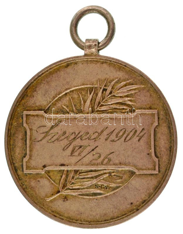 Leírás: 1904. "Szeged 1904. VI/26" kétoldalas jelzett Ag evezős díjérem füllel, "SGA" gyártói jelzéssel (12,56g/0.800/29mm) T:XF patina