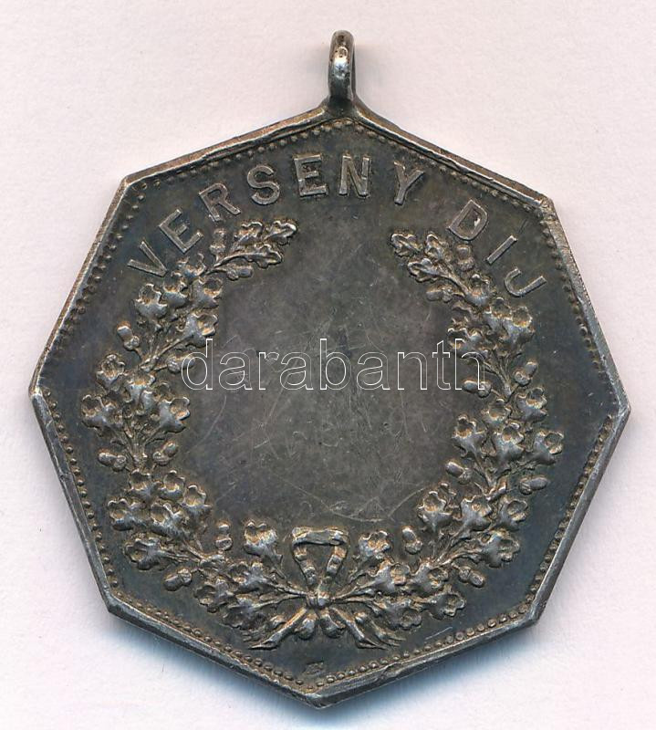 Leírás: ~1900. "Küzdj és bizva bizzál / Verseny dij" jelzett Ag díjérem füllel (15,24g/38x34mm) T:XF karc, patina