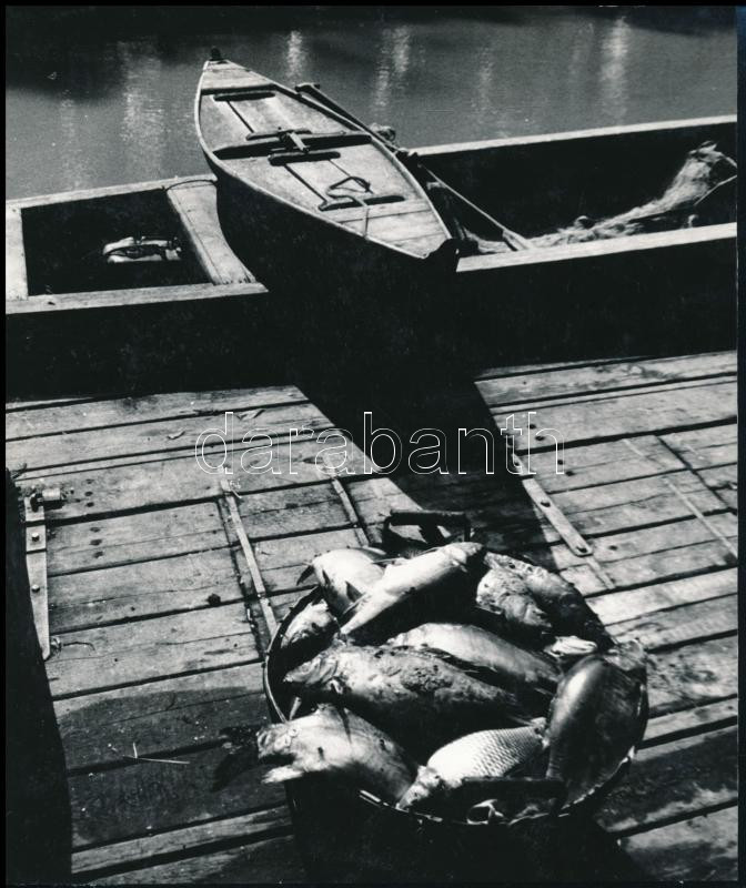 1975 Kopecskó János zalaegerszegi fotóművész Esztergomban készített vintage fotóművészeti alkotása (Napi fogás), ezüst zselatinos fotópapíron, feliratozva, 20x16,5 cm