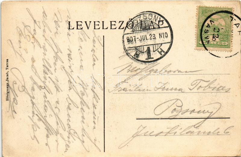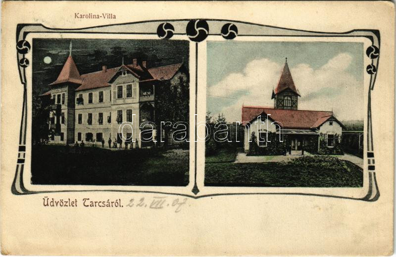 1907 Tarcsa, Tarcsafürdő, Bad Tatzmannsdorf; Karolina Villa este, Vízgyógyintézet. Hönigmann Jacab kiadása / Wasserheilanstalt / villa at night and spa. Art Nouveau (EK)