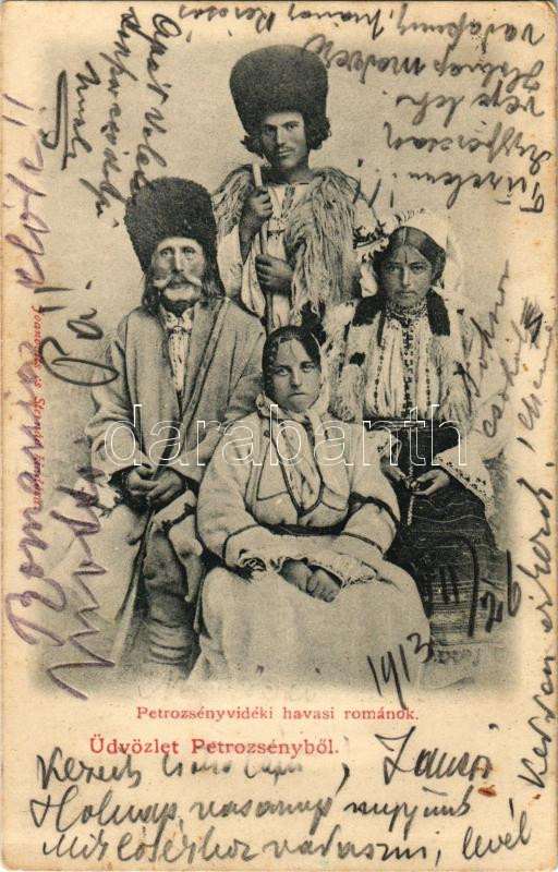 1913 Petrozsény, Petrosani; Petrozsény vidéki havasi románok. Joanovit... https://www.darabanth.com/hu/453-Gyorsarveres/453.0/Kepeslapok/Erdely~1000005/1913-Petrozseny-Petrosani-Petrozseny-videki-havasi-romanok-Joanovits-es-Sternad-kiadasa-~II3017434