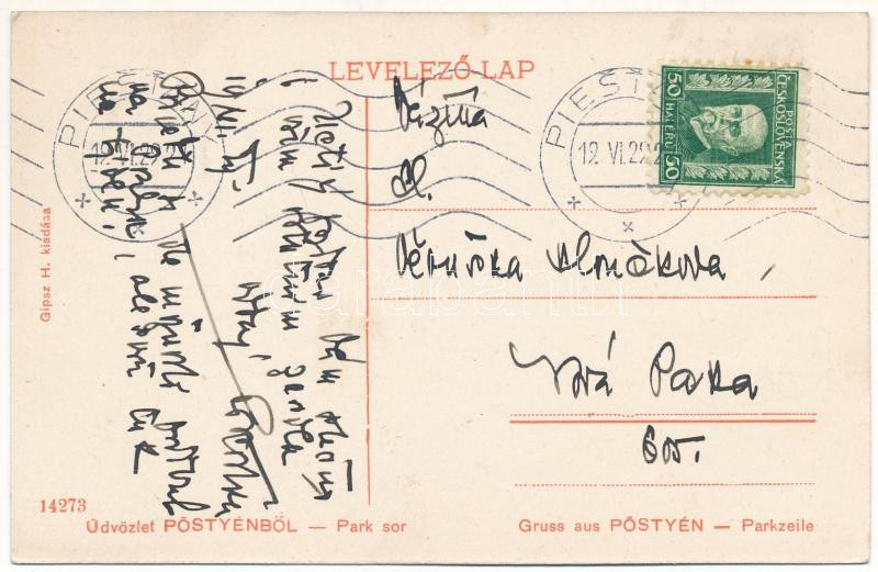 1919 Pöstyén, Piestany; Park sor / street view, villas https://www.darabanth.com/hu/453-Gyorsarveres/453.0/Kepeslapok/Felvidek~1000006/1919-Postyen-Piestany-Park-sor-street-view-villas~II3018927